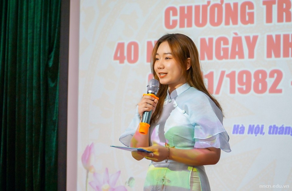 Thay mặt đội ngũ cán bộ, giảng viên Nhà trường, cô Phạm Thị Thu Trang – Giảng viên ngành Tiếng Trung Quốc – Khoa Ngoại ngữ đã có những lời tâm sự, bộc bạch hết sức tâm huyết. Trong phần trình bày của mình, cô Trang đã chia sẻ những câu chuyện thực tế trong sự nghiệp đứng lớp cũng như cảm nhận khi được giảng dạy tại Trường Cao đẳng Ngoại ngữ và Công nghệ Hà Nội.