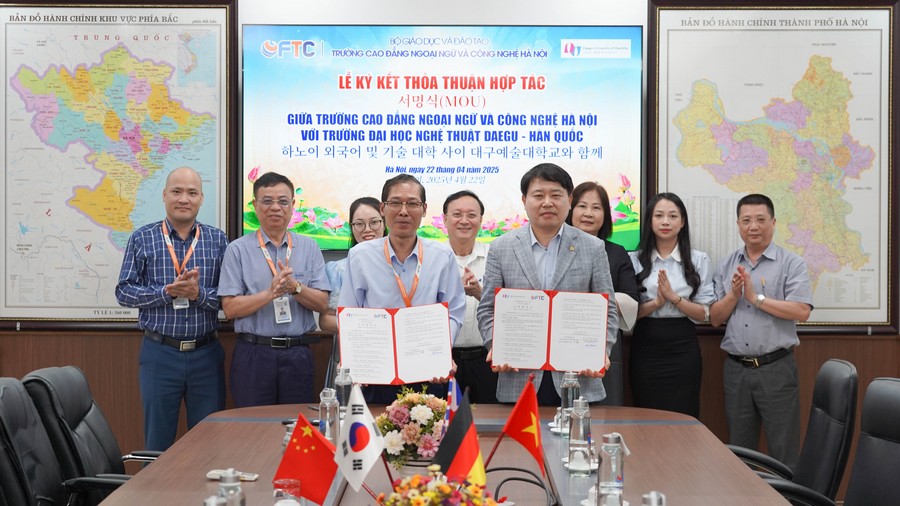 Với phương châm phát triển bền vững và hội nhập quốc tế, Trường Cao đẳng Ngoại ngữ và Công nghệ Hà Nội luôn chú trọng đẩy mạnh các hoạt động hợp tác với các trường uy tín trên thế giới. Việc ký kết thỏa thuận hợp tác với Đại học Nghệ thuật Daegu – Hàn Quốc không chỉ mở ra nhiều cơ hội học tập, giao lưu văn hóa cho sinh viên nhà trường mà còn là minh chứng cho sự năng động, tiên phong trong tầm nhìn chiến lược của FTC.